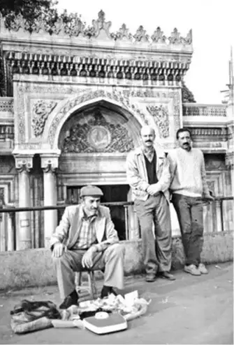 Aksaray Valide Camii avlu giriş kapısı önünde